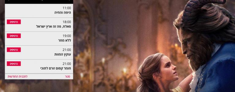 A complete events calendar in an excellent design and experience. The calendar displays events in a highly intelligent manner, accompanied by many algorithms that know how to take into consideration missing content and present others in their place, display events according to advertising status, according to card stock, by advertising status and other variables. The calendar displays detailed information in a floating window about the event including its additional screenings. As in the rest of the website, the content displayed comes from several different types of content and related entities, all automatically according to predetermined settings.